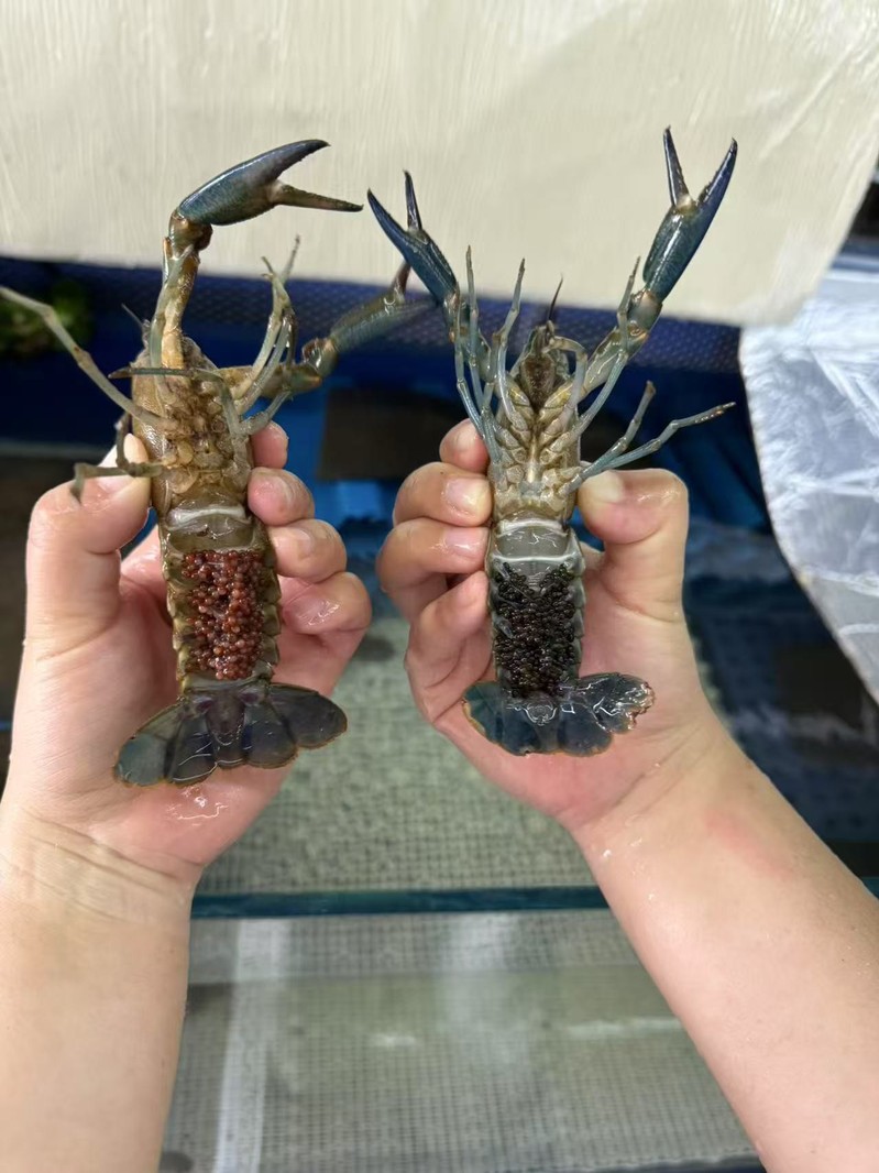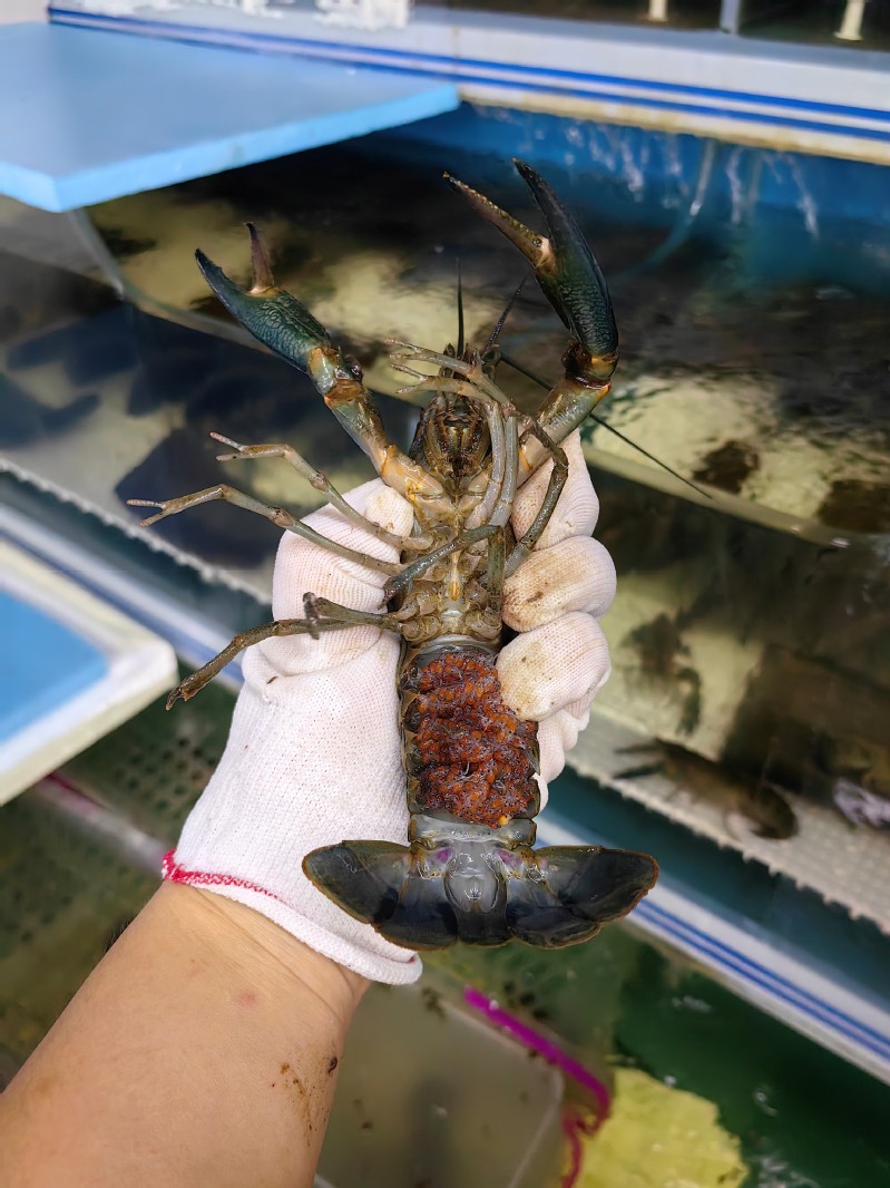 项目组在杭州市余杭智慧渔业研究中心基地建立了优良的澳洲蓝龙虾亲虾繁育和虾苗培育循环水设施,系统地研究了亲虾循环水培育系统不同环境因子对澳洲蓝龙虾受精抱卵率的影响,其中抱卵率最高达到71.42%,证实了循环水养殖系统在澳洲蓝龙虾亲虾培育过程中具有水质稳定、系统安全稳定可靠等特点。所培育幼苗存活率高(接近90%)、生长状况良好,经过15天的育苗,平均体长达到2.51cm,体质量达到0.70g。