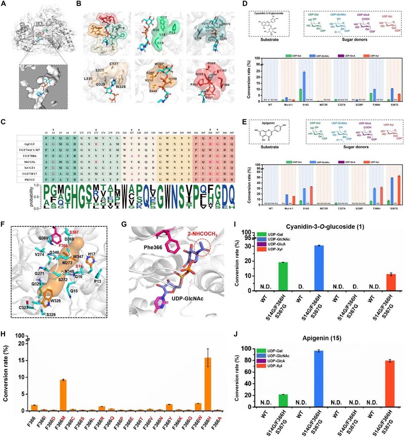 综上,该研究建立了植物糖基转移酶理性设计的新策略,为提升植物糖基转移酶的活性、糖基供体宽泛性与区域选择性提供了新范式,为蛋白质理性设计与定向改造在合成生物学与绿色生物制造领域的应用提供了新的视野和思路,为具有药用价值的黄酮糖苷类化合物的定向合成与大健康产品的创制提供了理论和实验基础。