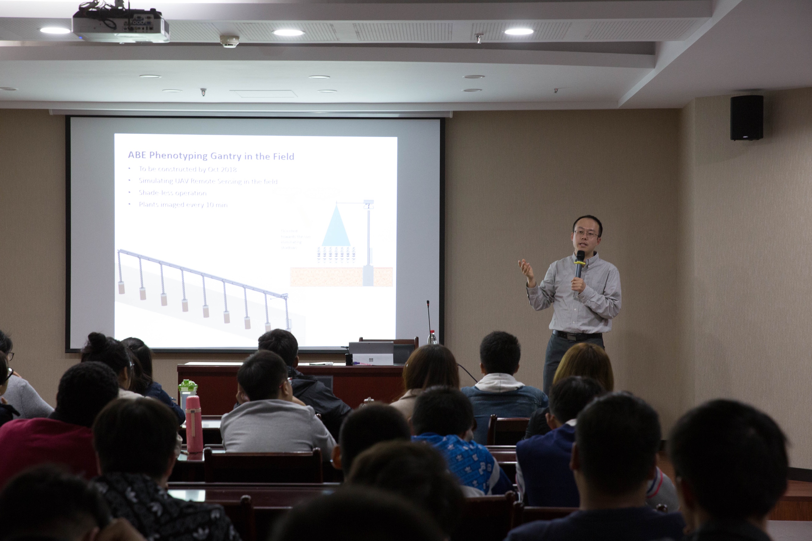 On the evening of October 19, Dr. JIN Jian from Purdue University visited BEFS and delivered a lecture entitled “Purdue's New Sensors, Facilities and Software Technologies for Improved Plant Phenotyping Quality”. The event was host by research professor CEN Haiyan.