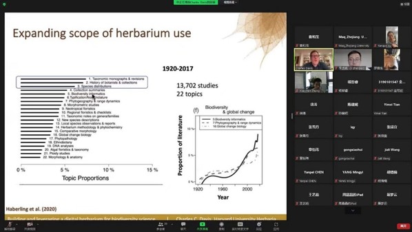September 16, 2022, Prof. Charles Davis from Harvard University gave a report about "Genomic research and climate change investigations using herbarium specimens."